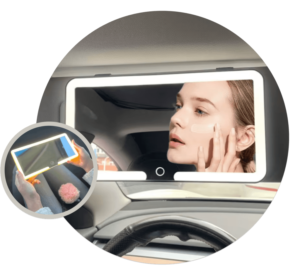 Perfektionieren Sie Ihr Make-up mühelos mit dem Car Makeup Mirror, der für maximale Bequemlichkeit und Tragbarkeit entwickelt wurde. Ob auf dem Weg zur Arbeit, auf dem Weg zu einer Veranstaltung oder zum Auffrischen Ihres Looks unterwegs, dieser elegante Spiegel bietet eine perfekt beleuchtete Glam-Station - ein professionelles Studio ist nicht erforderlich!