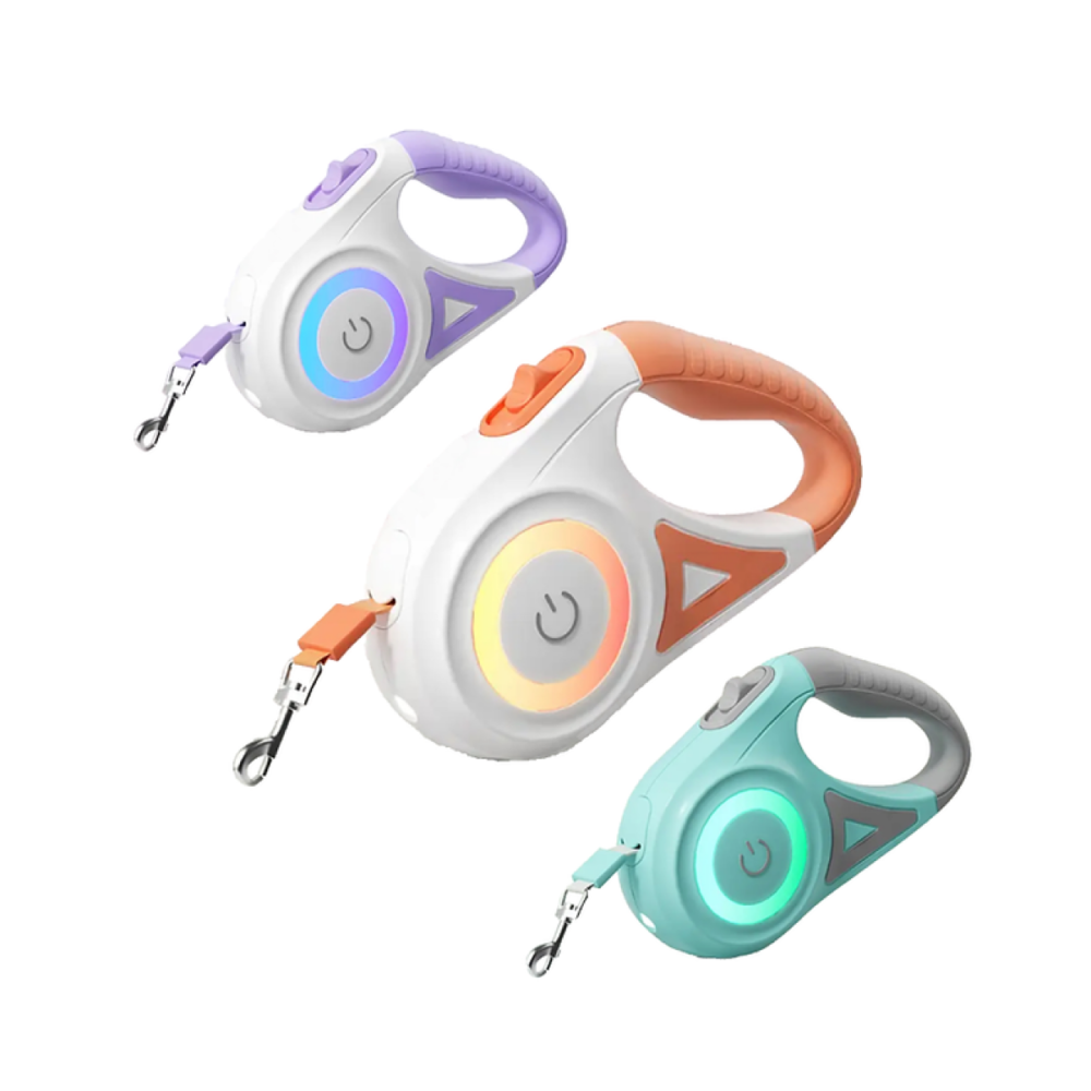 Die automatische einziehbare Hundeleine mit LED-Taschenlampe enthält keine Batterien (2 AAA-Batterien werden benötigt)