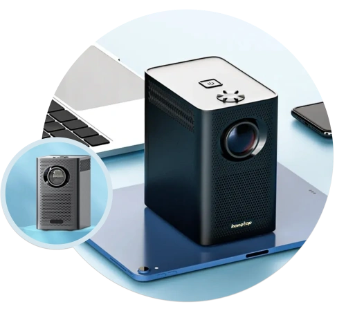 Verwandeln Sie jeden Raum in ein Filmparadies. Der Projektor projiziert atemberaubende 4K-Bilder mit einer Größe von bis zu 120 Zoll, während das leichte Design bedeutet, dass Sie die große Leinwand überall hin mitnehmen können.