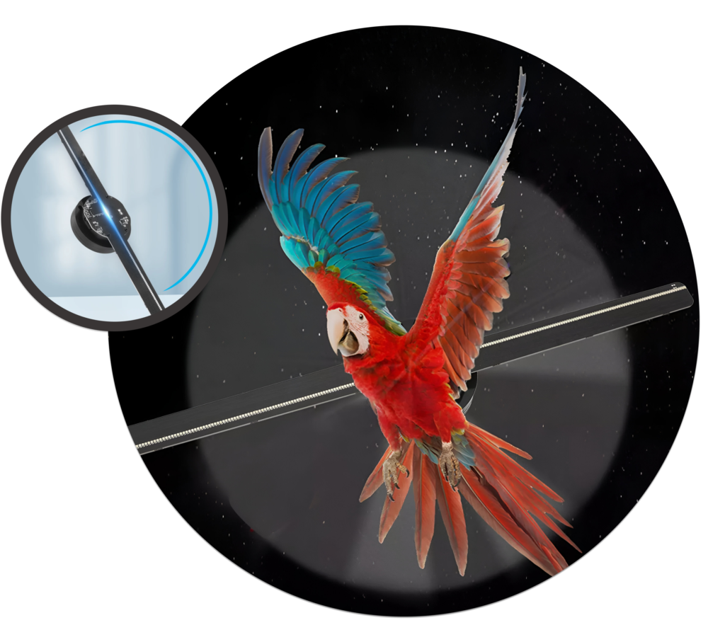 1. 800*480 rotating 3D imaging: 224 LED rotating imaging, showing naked-eye high-definition 3D visual effects. The physical resolution reaches 800*480. It supports most video formats, animation and 3D text image display